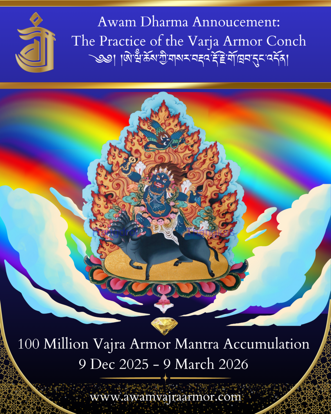 Under the guidance of HH Khenchen Lama Rinpoche, all holders of the Awam lineage will undertake the Vajra Armor Conch Practice with full responsibility.