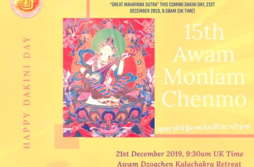 The 15th Awam Monlam Chenmo on Dakini Day Tashi Delek Friends and Students, Rinpoche will give a teaching on “Ahma” and oral transmission and instructions of the “Great Mahayana Sutra” this coming…