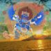 On a lotus, sun, moon and nine-headed dark-black hog;